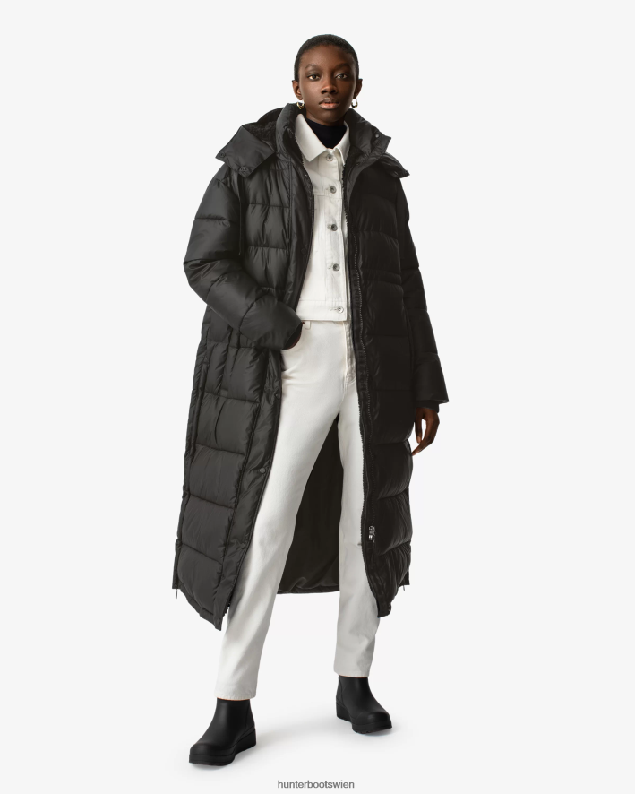 Die unerschrockenen Pufferjacken für Damen bieten hervorragenden Schutz vor den Elementen bei Winterausflügen und verfügen zusätzlich über einen internen Tragegurt, der ein müheloses Reisen auf Ihren Schultern ermöglicht. Dieser gummierte lange Puffermantel besteht aus einem wasserabweisenden Obermaterial aus 100 % recyceltem Nylon und verfügt über eine weich gepolsterte Isolierung. Er verfügt über seitliche Reißverschlüsse für Bewegungsfreiheit, ein ikonisches Hunter-Webdetail an der Kapuze und hält Sie bei Temperaturen von bis zu -25 Grad Celsius warm (-13 Fahrenheit).